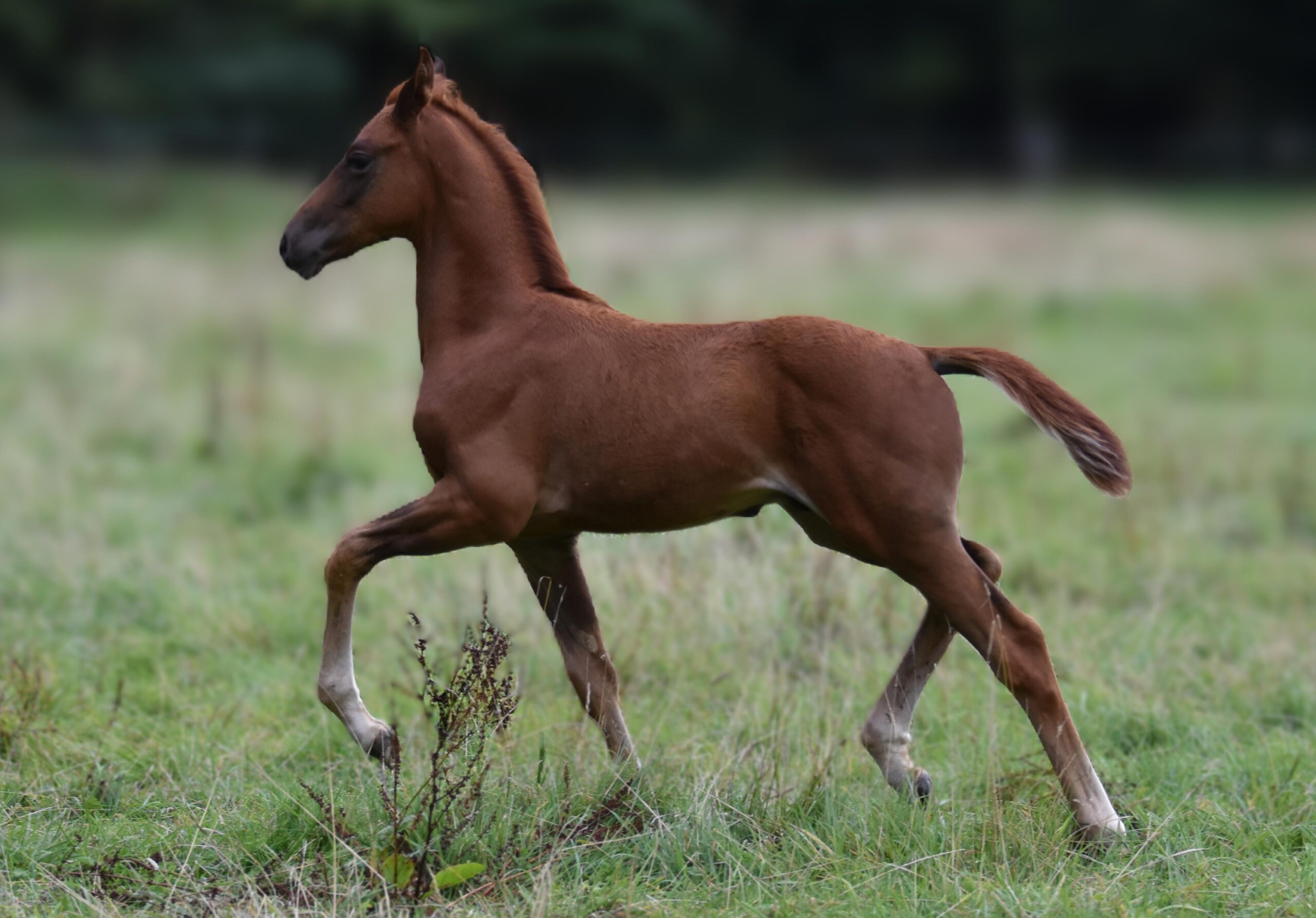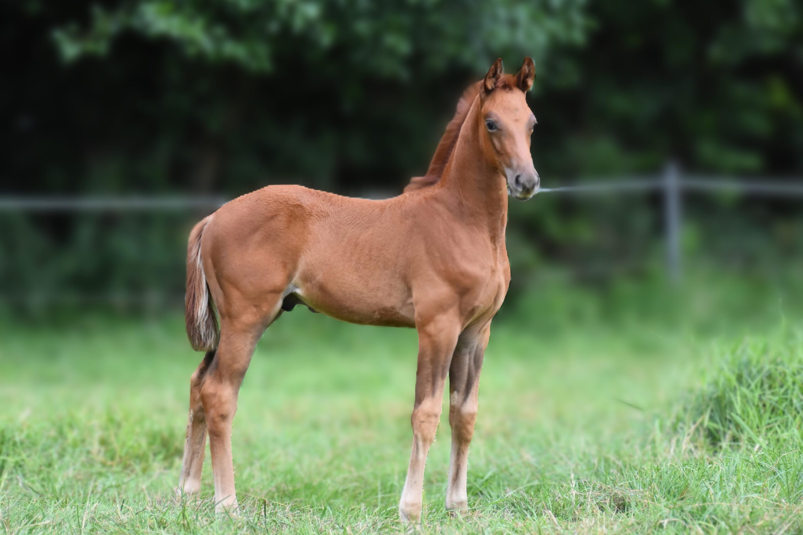 Mojito: Ein feiner Cocktail der modernen Dressurpferdezucht. Dunkelfuchs-Hengstfohlen mit Dressurpedigree der Extraklasse, geb. am 23.06.2025 von Morricone I aus der St.Pr.St. Dalotta von Don Frederico/Weltmeyer/Brentano, ausgestattet mit drei überzeugenden Grundgangarten, wächst er liebevoll mit Familienanschluss auf. Elegant und langbeinig kommt er daher und kann in Typ und Qualität seinen Vater nicht verleugnen. Interessant für Sport und Zucht, direkt vom Züchter. WFFS negativ. Aufgrund seiner späten Geburt unter Wert abzugeben.